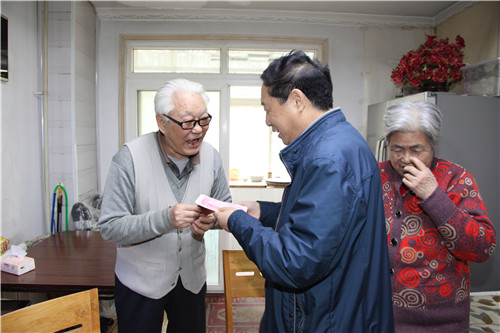 ? ? 隨后,王新坪與龐日軒一同集體慰問了陜西省勞動模范李新勝、西安市勞動模范劉建利和陳小龍同志,為他們送上了慰問金,送去了組織的關(guān)懷和節(jié)日的問候。