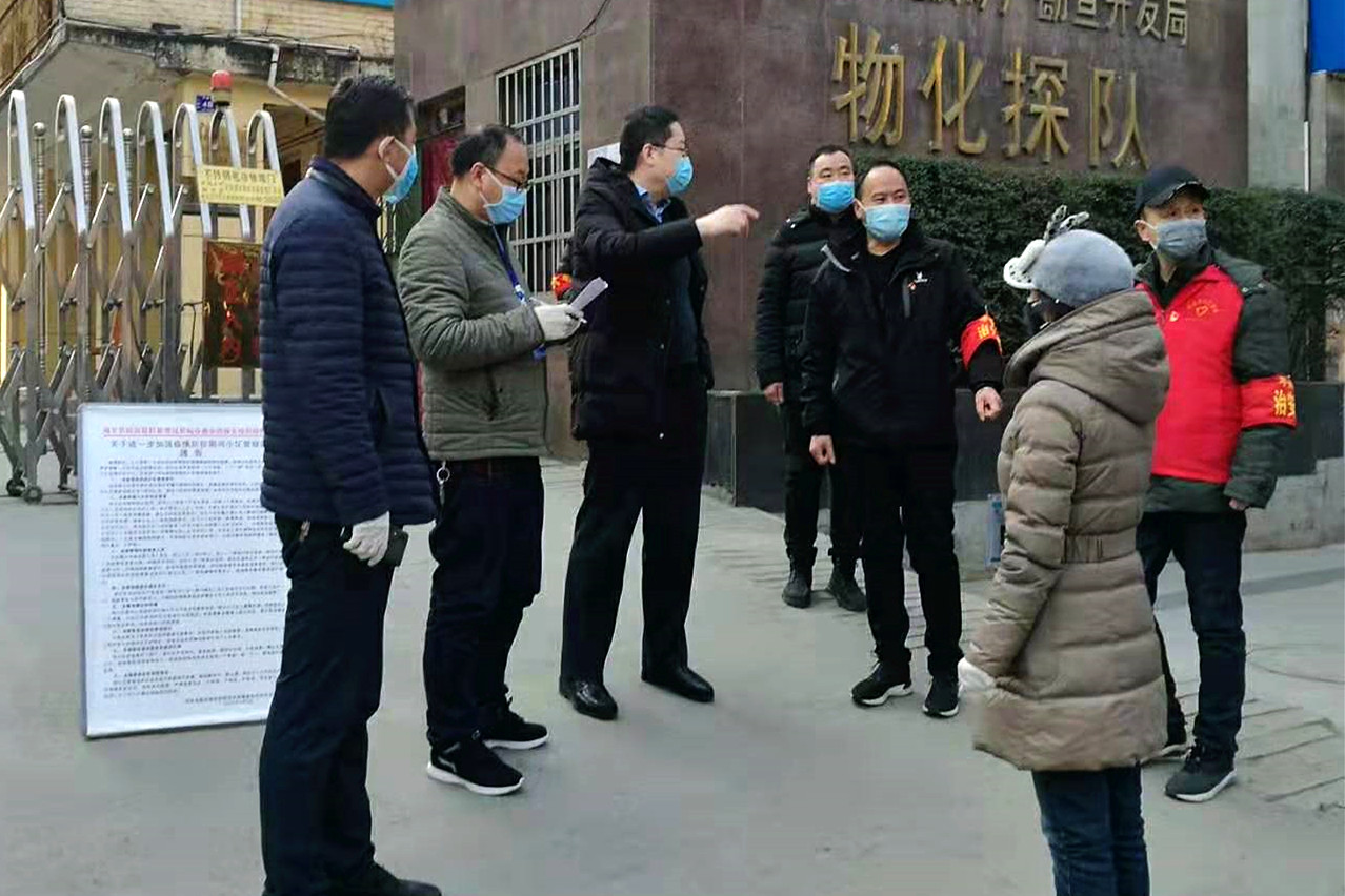 ? ? 2月11日,陜西省、西安市、周至縣三級紀委、監委聯合對轄區疫情防控工作進行了暗訪,通過暗訪檢查,對物化探隊周至基地家屬院小區防控工作給與高度肯定,并獎勵了消毒液等防控物資。